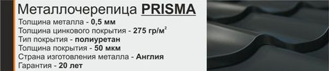 Металлочерепица Prismа способна стойко переносить внушительные ударные и весовые нагрузки. Она достойно противостоит царапинам, температурным и влажностным перепадам, биологическим агрессиям и солнечным лучам.